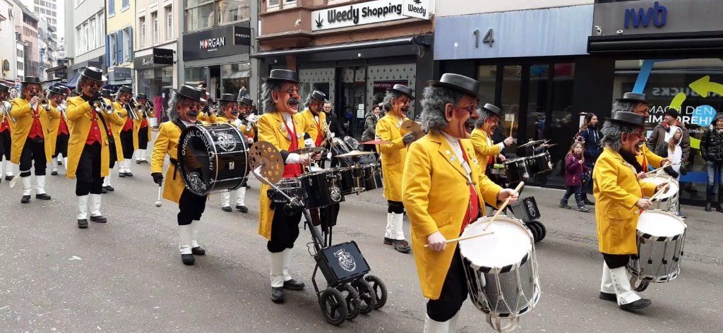 trafen sich drei Kollegen mit Pauke, Handorgel und Trommel, inspiriert von den damals schon schränzenden Jeisi Miggern. Zu dritt von der Claramatte aus, zogen sie kostümiert durch die Innerstadt und schon bald gesellten sich noch weitere Kameraden zu ihnen.